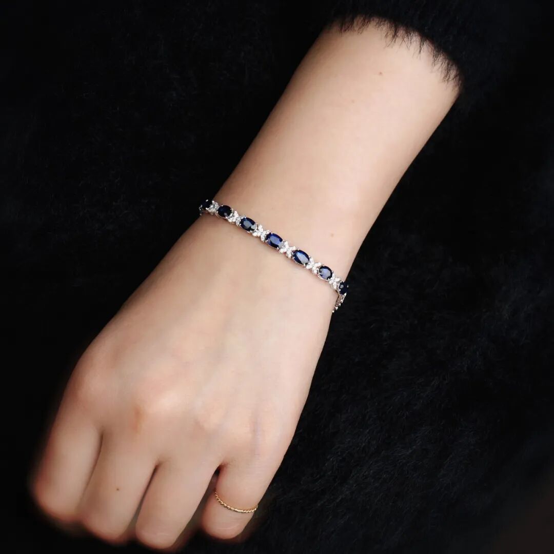 天然蓝宝石配钻石手链(蓝宝石共重约3.13克拉)