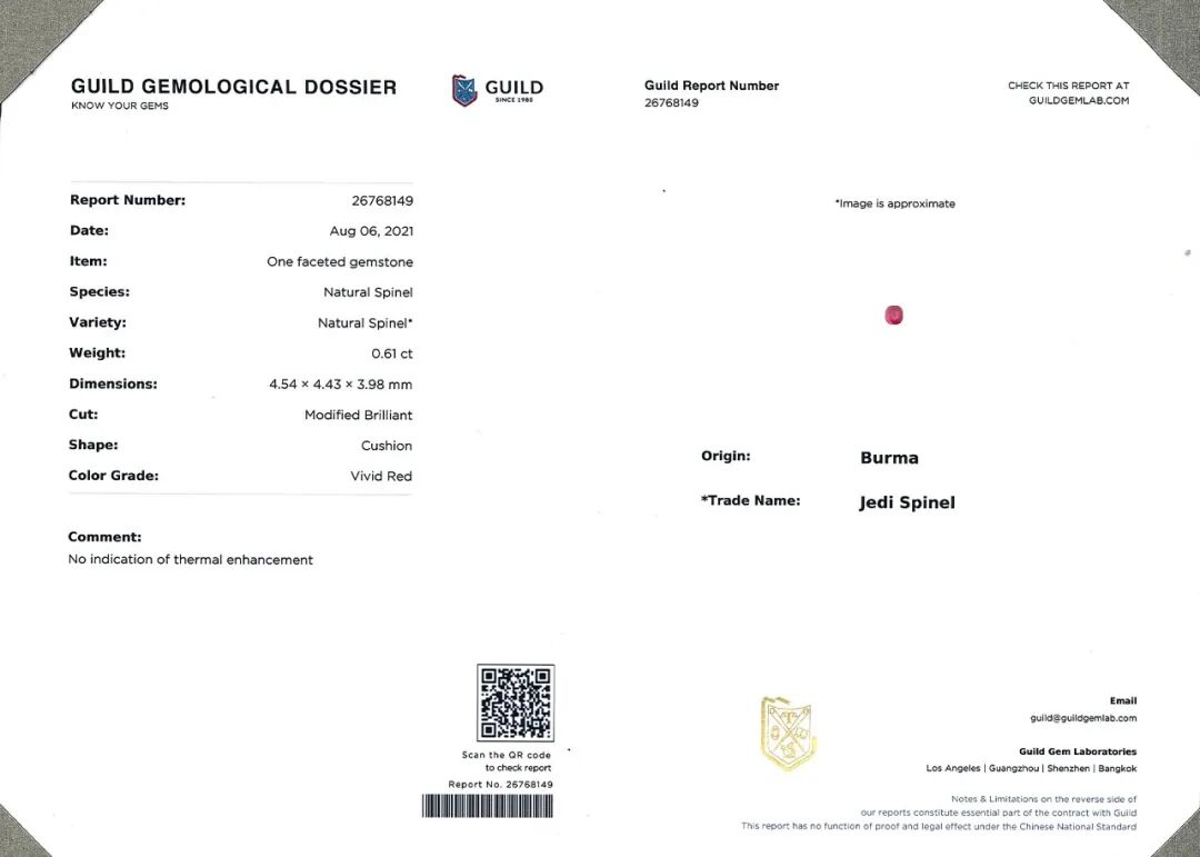 0.61克拉「缅甸」「绝地武士」尖晶石配钻石戒指,未经加热